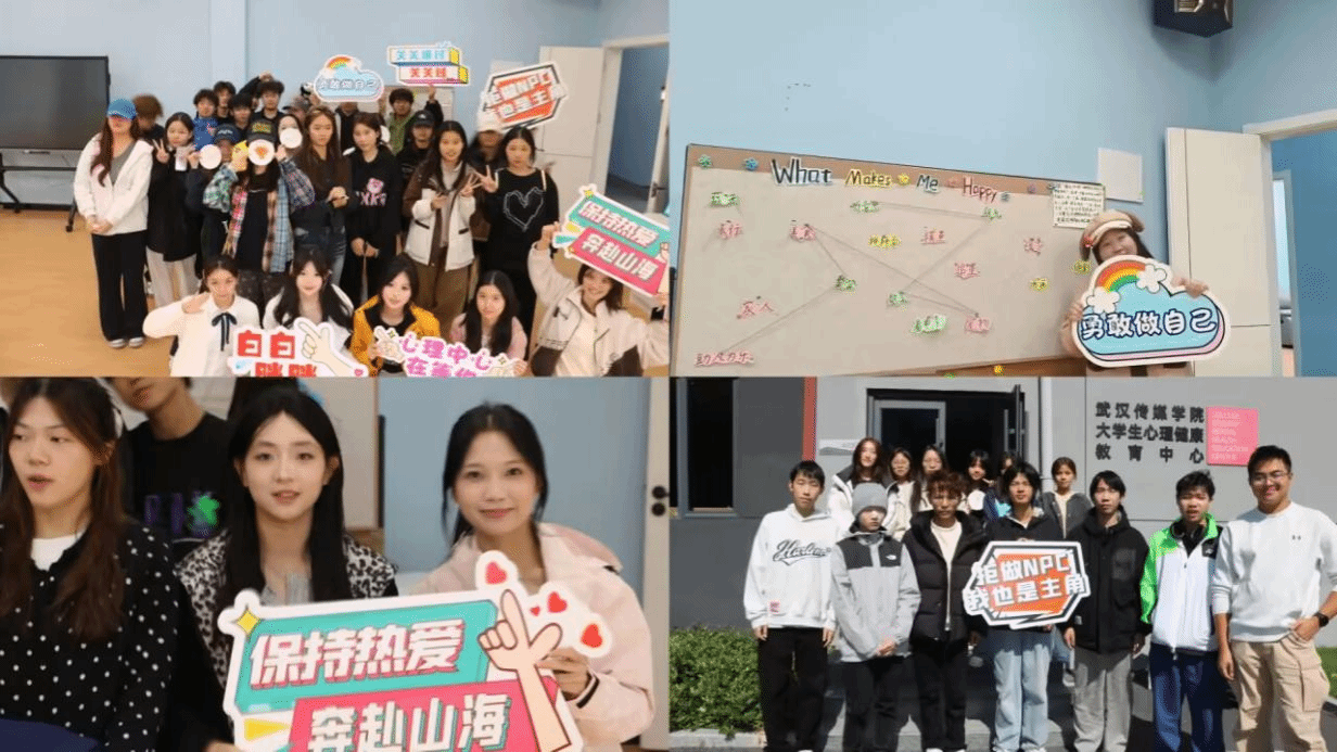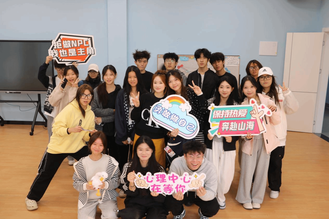 活动最后,同学们在心理中心各区域自由打卡合影。大家手持积极标语,在镜头前留下笑容,为此次体验画上圆满句号。